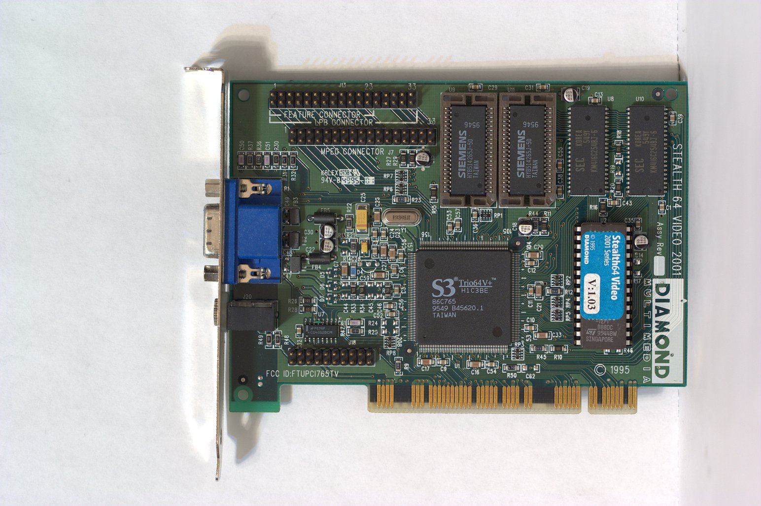 Diamond Stealth 64 Video 2001 S3 Trio64V+ 86C765 PCI 32/33, 5V VGA DSUB 2MB